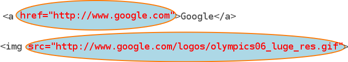 The URL information, as additional discription of a tag, is specified in attributes of tag: